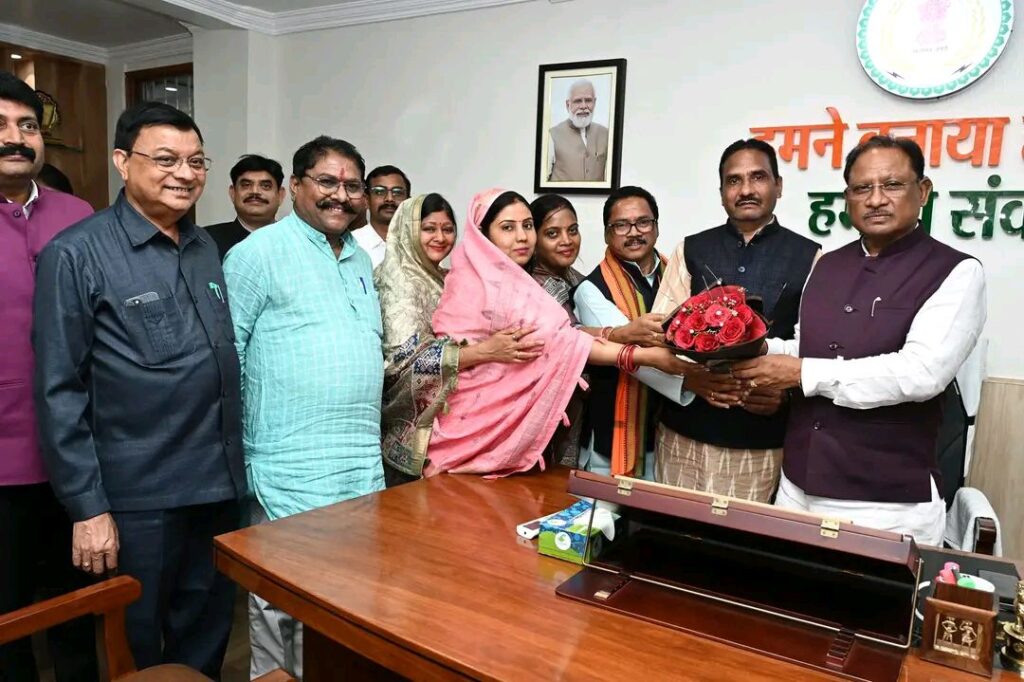 बांकीमोंगरा नगर पालिका अध्यक्ष श्रीमती सोनी कुमारी झा ने मुख्यमंत्री विष्णु देव साय से किया सौजन्य मुलाकात व लिया आशीर्वाद ।