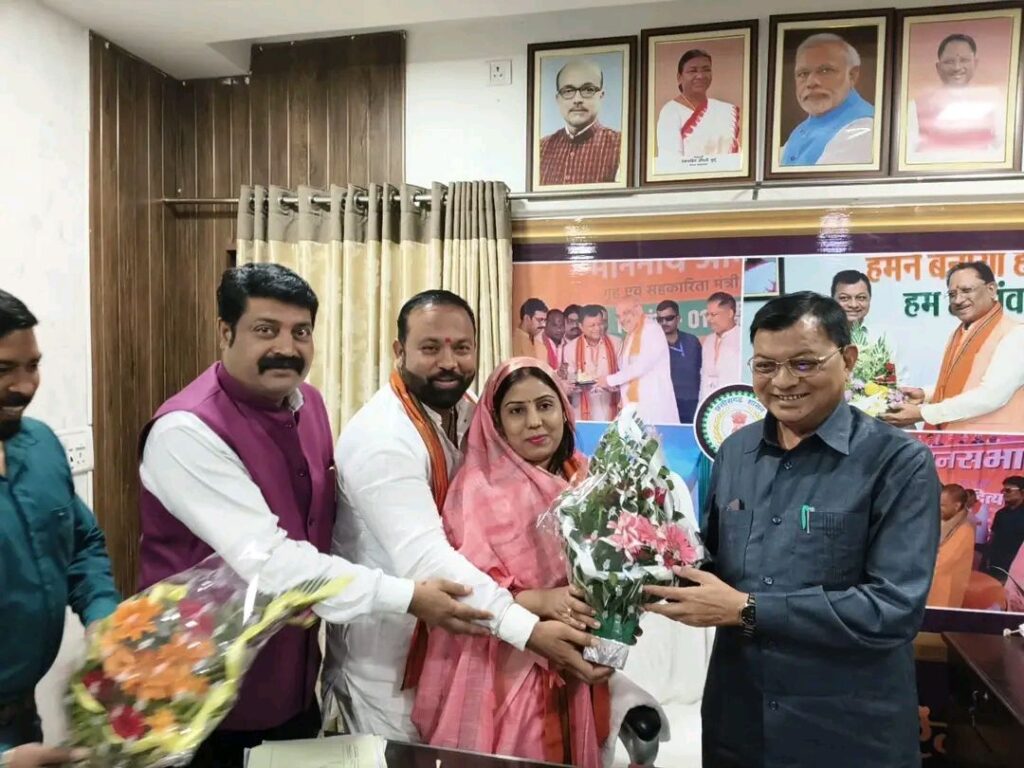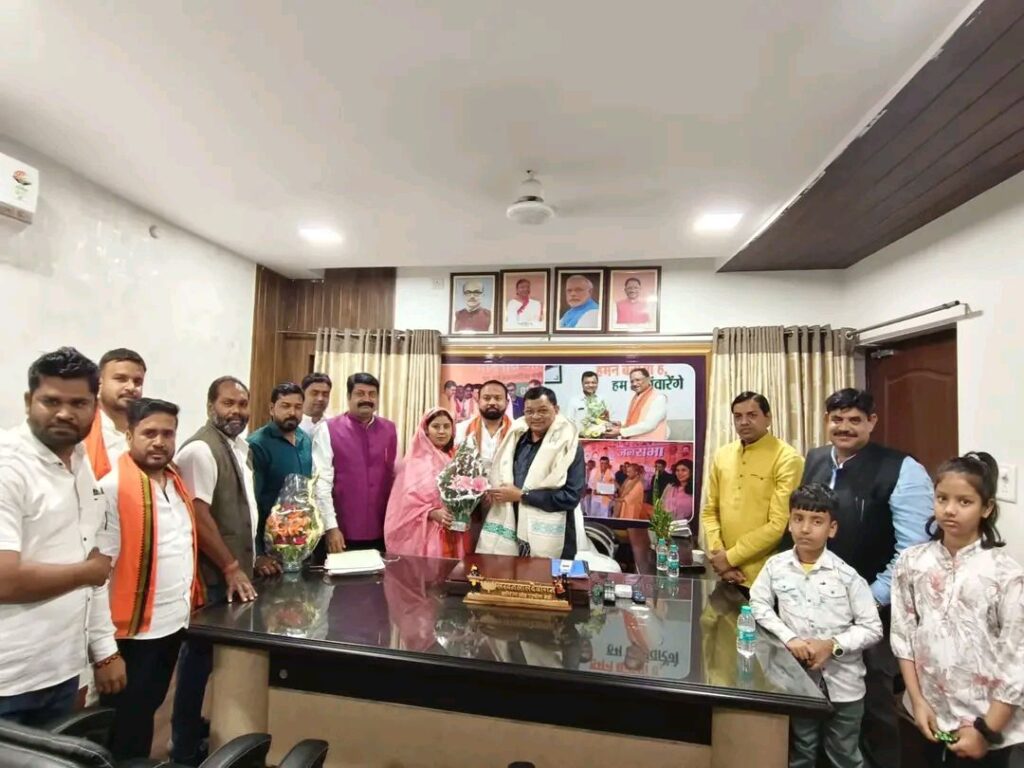 रायपुर में छत्तीसगढ़ शासन के वाणिज्य एवं उद्योग मंत्री लखन लाल देवांगन से भी नगर पालिका परिषद बांकीमोंगरा के नवनिर्वाचित अध्यक्ष श्रीमती सोनी कुमारी झा ने अपने कार्यकर्ताओं व परिवारों के साथ सौजन्य मुलाकात करते हुए आशीर्वाद लिए ।