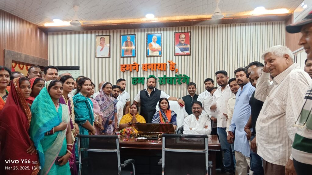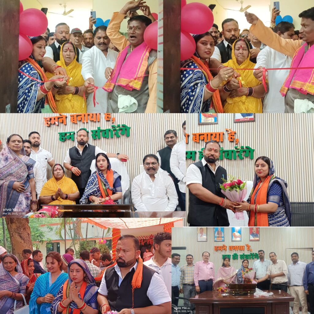 छत्तीसगढ़/कोरबा मंगलवार को जिले के बांकीमोंगरा नगर पालिका परिषद में पालिका अध्यक्ष श्रीमती सोनी विकास झा ने पदभार ग्रहण किया । सर्वप्रथम बांकीमोंगरा पालिका अध्यक्ष श्रीमती सोनी कुमारी झा व पति विकास झा ने महराज जी के द्वारा पालिका परिसर में विधि-विधान से श्री हनुमान जी का पूजा अर्चना करते हुए हवन कार्यक्रम किया गया , तत्पश्चात नगर पालिका परिषद बांकीमोंगरा अध्यक्ष श्रीमती सोनी कुमारी झा ने अपने परिवार व कार्यक्रम में उपस्थित जनों के साथ पालिका कार्यालय के अध्यक्ष कक्ष में पूजा अर्चना के साथ फिता काटकर प्रवेश किया । जहां नगर पालिका परिषद बांकीमोंगरा के सीएमओ ज्योत्सना टोप्पो सहित अन्य ने अध्यक्ष श्रीमती सोनी कुमारी झा का पुष्प गुच्छ भेंटकर स्वागत किया गया । बांकीमोंगरा पालिका अध्यक्ष श्रीमती सोनी कुमारी झा ने नगर पालिका परिषद कार्यालय में पालिका के अधिकारियों के समकक्ष रजिस्टर में हस्ताक्षर कर अपने पदभार कार्य का शुभारंभ किया । इस दौरान भाजपा कोरबा जिलाध्यक्ष मनोज शर्मा , प्रदेश कोषाध्यक्ष भाजयुमो छत्तीसगढ़ विकास झा , बांकीमोंगरा मंडल अध्यक्ष उदय शर्मा , नगर पालिका परिषद बांकीमोंगरा के उपाध्यक्ष श्रीमती गायत्री कंवर सहित अध्यक्ष श्रीमती सोनी कुमारी झा के परिवार , पार्षदगण , नगर पालिका परिषद के अधिकारी – कर्मचारीगण , सफाईकर्मी , वरिष्ठजन , पत्रकार , व्यापारिगण एवं आसपास के नगरवासी उपस्थित रहे ।