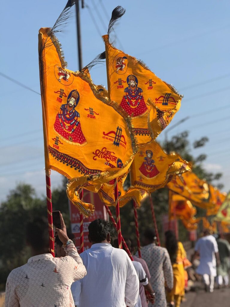 बाबा श्याम के पटोउत्सव के अवसर पर आज बाॅंकीमोंगरा से निकली गई ऐतिहासिक निशान पदयात्रा।