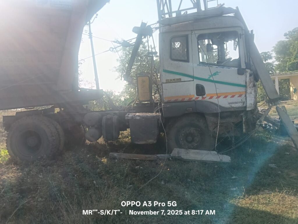 समार सिंह बिंझवार की रिपोर्ट बांकीमोंगरा के जवाली रोड़ में अनियंत्रित होकर सड़क से उतरा ट्रक, उड़ाया ट्रांसफार्मर को ,चालक फरार ।