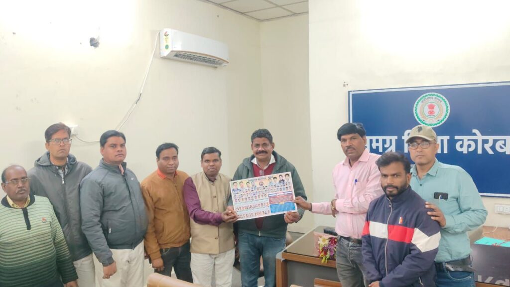 सर्व शिक्षक संघ जिला कोरबा टीम ने समग्र शिक्षा कोरबा DMC वल्ल्भ वैष्णव से सौजन्य भेंट कर उनको DMC बनने और नये साल की बधाई देते हुए संघ का कैलेंडर भेंट किया।