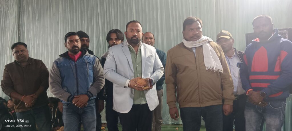 अखण्ड नवधा रामायण आयोजन नराईबोध में शामिल हुए विकास झा, भगवान श्रीराम जी के आदर्शो पर चलने का दिया संदेश।