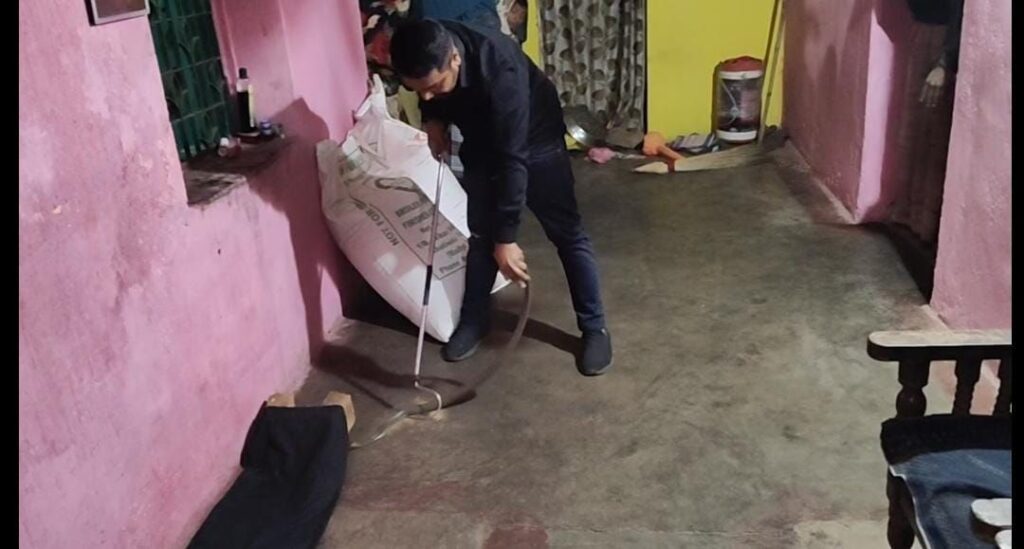 छत्तीसगढ़/कोरबा : बांकीमोंगरा क्षेत्र में पटेल परिवार पिछले 11 घंटे से घर में घुसे सांप से बहुत परेशान था, जिसको निकालने का अथक प्रयास किया गया जिसमें परिवार सफल नहीं हुआ फिर 112 की मदद ली गई तब तक सांप घर के किसी कोने पर जाकर ओझल हो गया था तब तक रात हो गई फिर कुछ घंटे बाद जब परिवार ने उसी कमरे फिर उसे देखा तो डर से काप गए फिर आखिरकार आधी रात 10.30 बजे जितेंद्र सारथी को सूचना दिया गया जिस पर कुछ घंटे में पहुंचने की बात कहीं फिर कोरबा से बांकीमोंगरा पहुंचे फिर जिस जगह कोबरा बैठा हुआ था वहां पड़े समान को हटाया गया,घर में मौजूद नाग अत्यंत उग्र अवस्था में था, ऐसे में किसी भी तरह की लापरवाही जानलेवा हो सकती थी। जितेंद्र सारथी ने वन्यजीव रेस्क्यु प्रोटोकॉल का पूरी तरह पालन करते हुए, बेहद सावधानी और कुशलता के साथ नाग को सुरक्षित रूप से रेस्क्यु कर थैले में डाला।