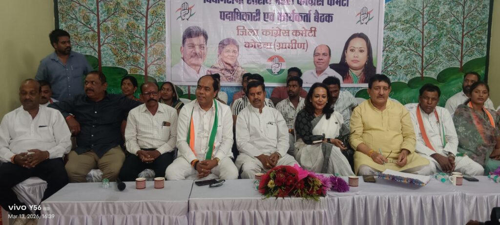 छत्तीसगढ़/कोरबा जिले के नगर पालिका परिषद बांकीमोंगरा के शांतिनगर सामुदायिक भवन में छत्तीसगढ़ प्रदेश कांग्रेस कमेटी की एक महत्वपूर्ण विधानसभा एवं मंडल स्तरीय बैठक संपन्न हुई। प्रदेश सह-प्रभारी जरीता लैतफलांग की अध्यक्षता में आयोजित इस बैठक में कांग्रेस की विचारधारा को जन-जन तक पहुँचाने और आगामी रणनीतियों पर गहन मंथन किया गया।
