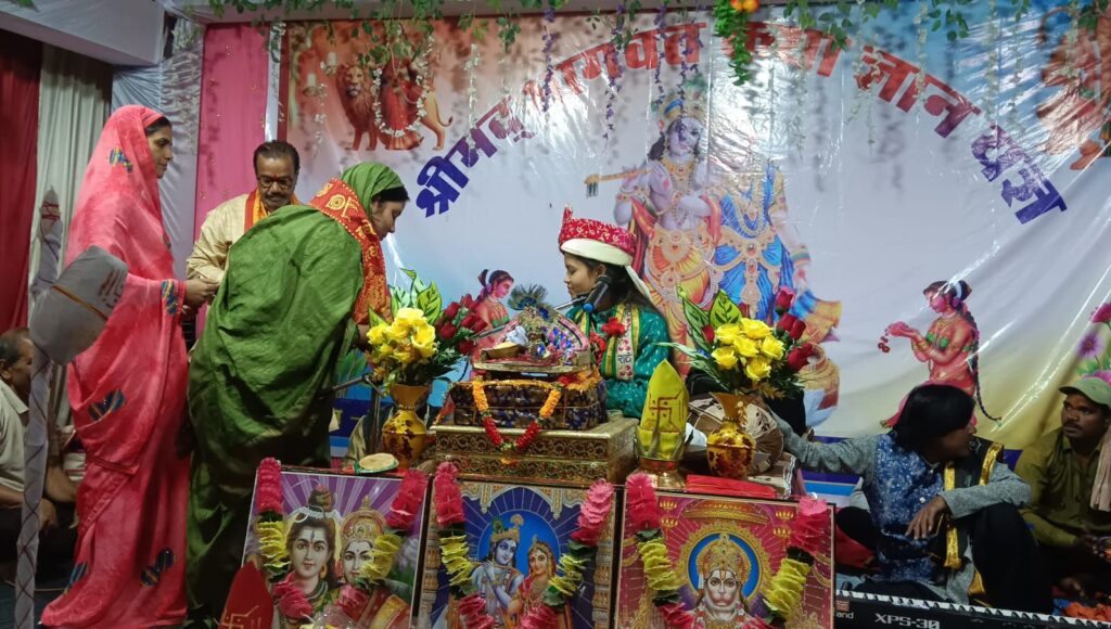 छत्तीसगढ़ /कोरबा नगर पालिका परिषद बांकीमोंगरा अन्तर्गत वार्ड क्रमांक 08 के जंगल साइड स्थित दुर्गा मंदिर परिसर में आयोजित श्रीमद् भागवत कथा ज्ञान यज्ञ में श्रद्धा और भक्ति का संगम देखने को मिल रहा है। इस पावन अवसर पर नगर पालिका अध्यक्ष श्रीमती सोनी विकास झा ने कथा स्थल पहुँचकर विधि-विधान से पूजा-अर्चना की और भगवान श्री कृष्ण का आशीर्वाद लिया।